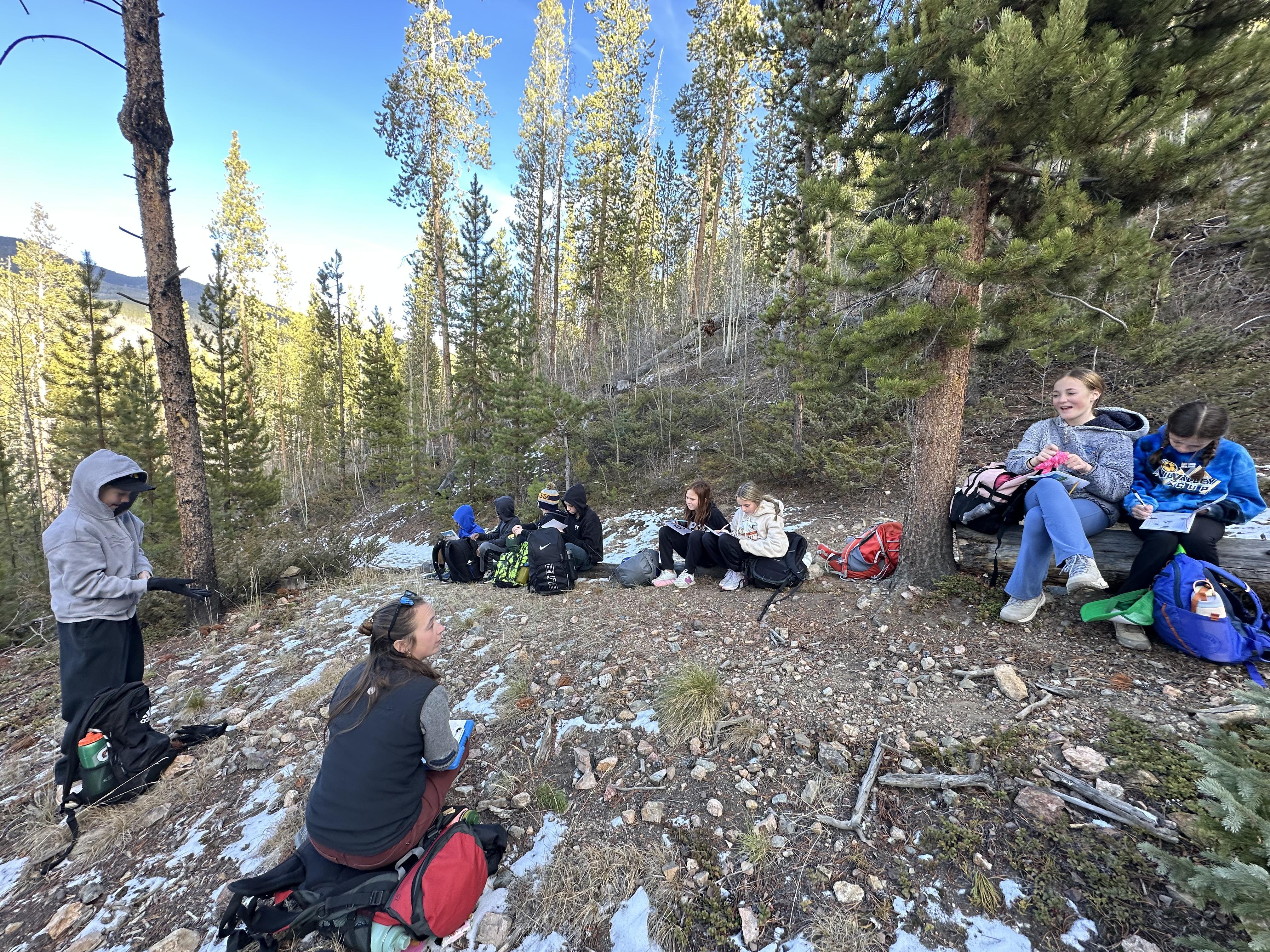 Each Keystone Science School program is specifically designed to meet the goals provided by American Academy. All programs include elements of team building, leadership, and an environmental science topic. Throughout the day students will be in small groups of up to 13 students as they hike, snowshoe, or cross-country ski. In the evening students will do a large group activity with all their classmates.